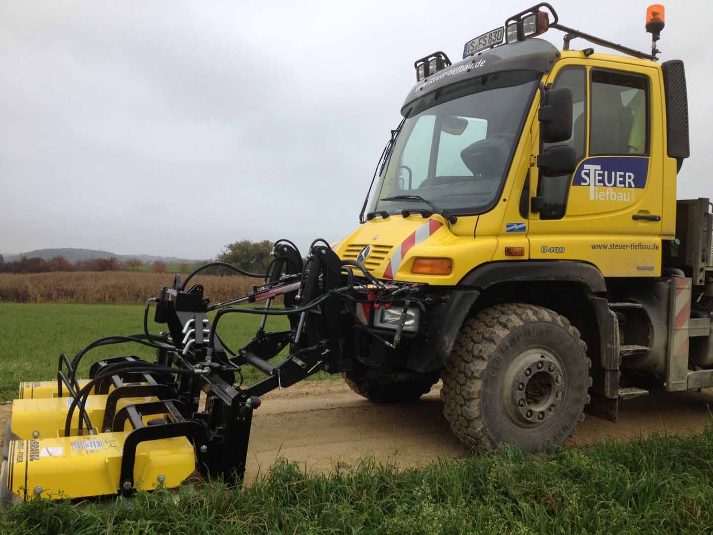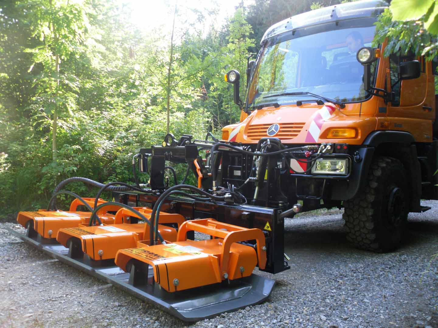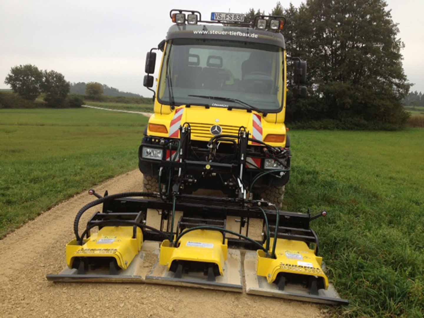 Über Zapfwelle oder über die Bordhydraulik angetriebene Dreifachplattenverdichter - Dreifachrüttelplatte für Unimog