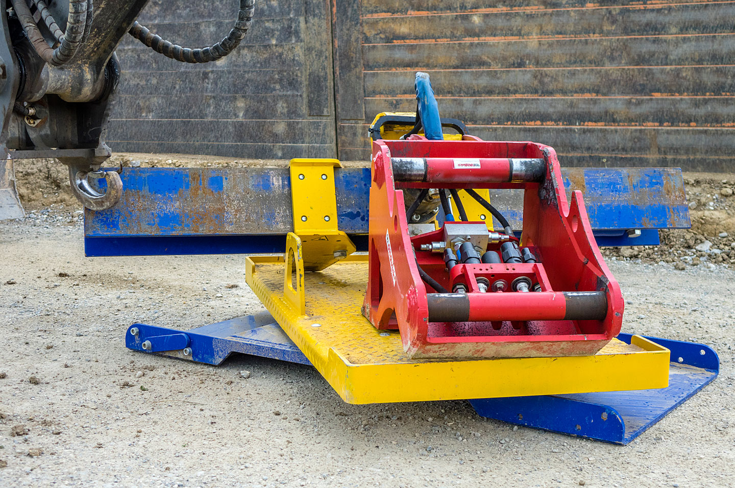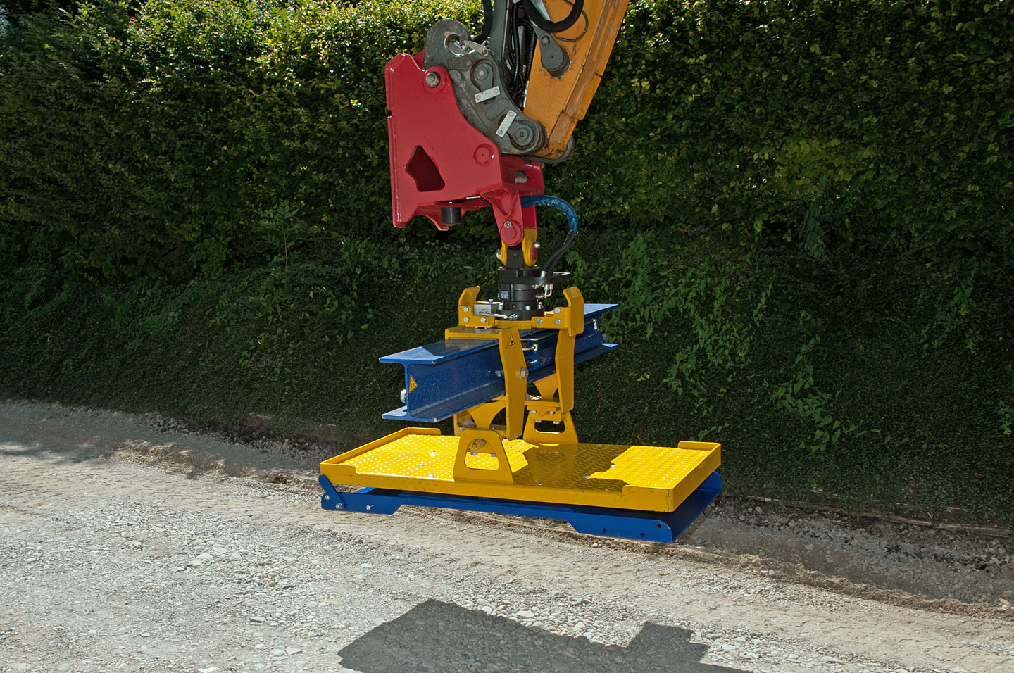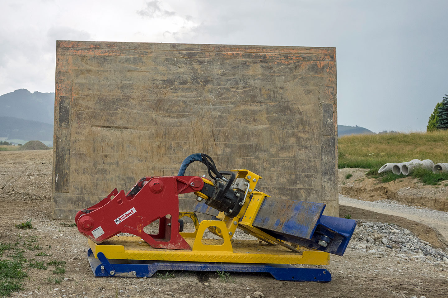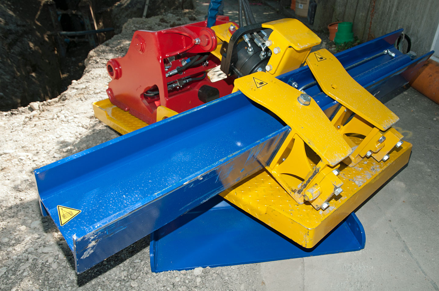 Der Gerätewender QuickRotator erleichtert im Kanalbau das Ablegen und positionsgerechte Zuweisen von Anbaugeräten wie Verbaugreifer und Anbauverdichtern zwischen zwei Baggern. Die Anbaugeräte werden auf dem Gerätewender QuickRotator abgelegt, transportiert und in die passende Aufnahmeposition zum jeweiligen Bagger mit OilQuick oder LikuFIX Schnellwechslersystemen gedreht.