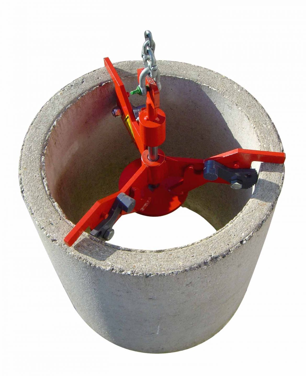 Mechanischer Schachtgreifer für stehende Betonrohre und Straßenablaufunterteile mit Schmutzfang