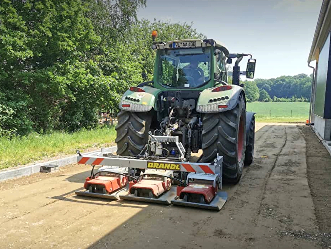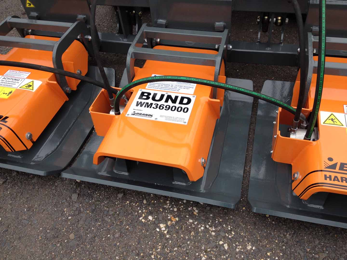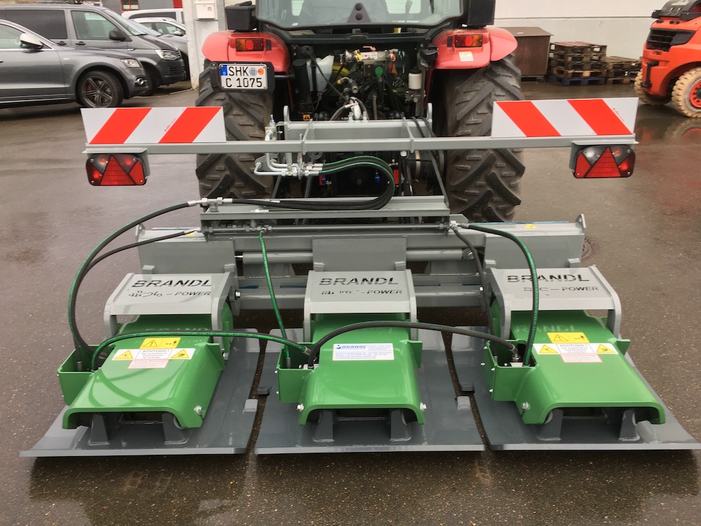 hydraulisch angetriebener Dreifachplattenverdichter-Dreifachrüttelplatte für Schlepper und Kommunalfahrzeuge - System BRANDL/BOMAG